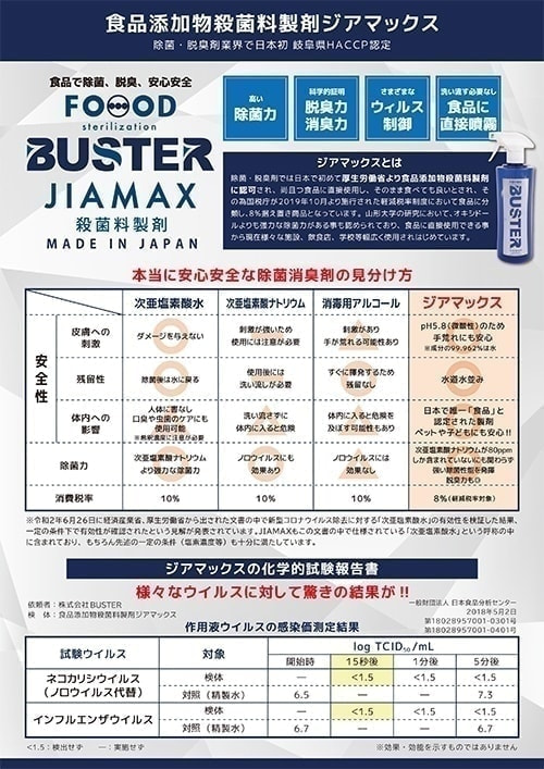 アルコールの代替え製剤として安心安全で高い除菌力が長期間(賞味期限5ヶ月)保たれるジアマックスを是非ご使用ください。